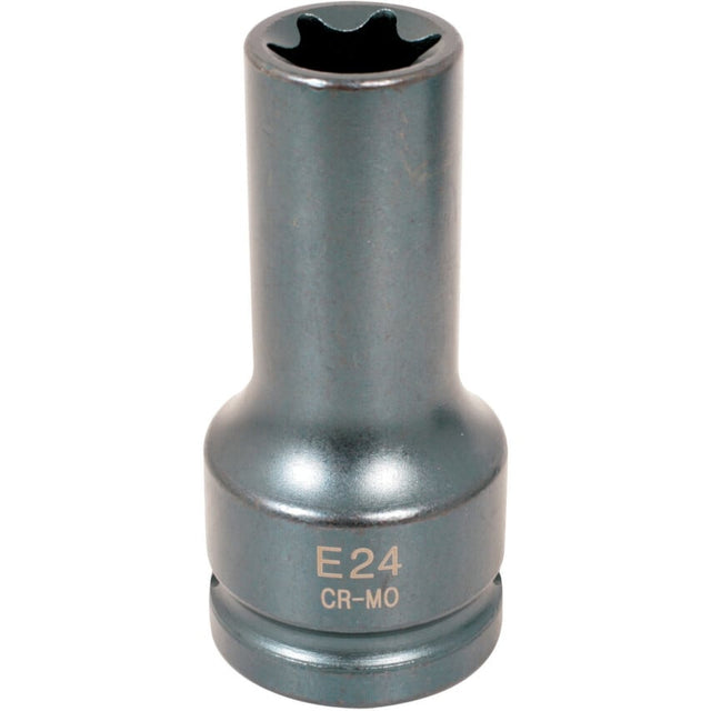 The 3/4in. square drive star impact socket is a vital tool for heavy-duty automotive applications like removing cylinder head and wheel flange bolts on HGVs. Crafted from durable materials, it withstands high torque forces and provides an extended reach with its 90mm length. Features and Benefits Crafted from chrome molybdenum for durability and longevity 90mm long for increased torque leverage Snug fit allows for easier handling and prevents slipping accidentsTypical Applications Removing cylinder head bolts from engines Removing wheel flange bolts on heavy goods vehicles (HGVs) Maintenance and repair tasks in automotive workshops Industrial machinery servicing Construction equipment maintenance Agricultural machinery repair