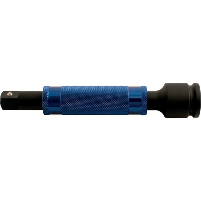 The impact extension bar with an aluminium spinner sleeve offers a swift solution for tightening and loosening fixings. Designed for use with impact wrenches, its durable construction withstands high torque and impact force. The spinner sleeve enables rapid rotation, significantly reducing task time compared to traditional extension bars.Features and Benefits Spinner sleeve with knurled grip supports easy handling of the bar and socket Chrome molybdenum construction ensures durability and longevity Black phosphate finish protects against corrosion and marking Available in a range of drive sizes to suit all requirements