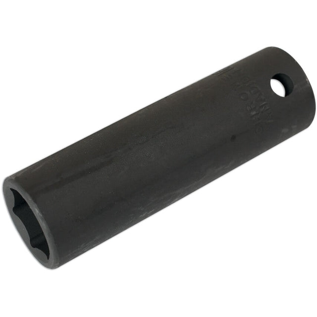 The 1/2in. drive deep impact socket from Laser Tools is available in a range of sizes to suit all requirements. Ideal for use with lug nuts and bolts that are deeper than standard, they effectively absorb vibration to prevent cracking in your workpiece.