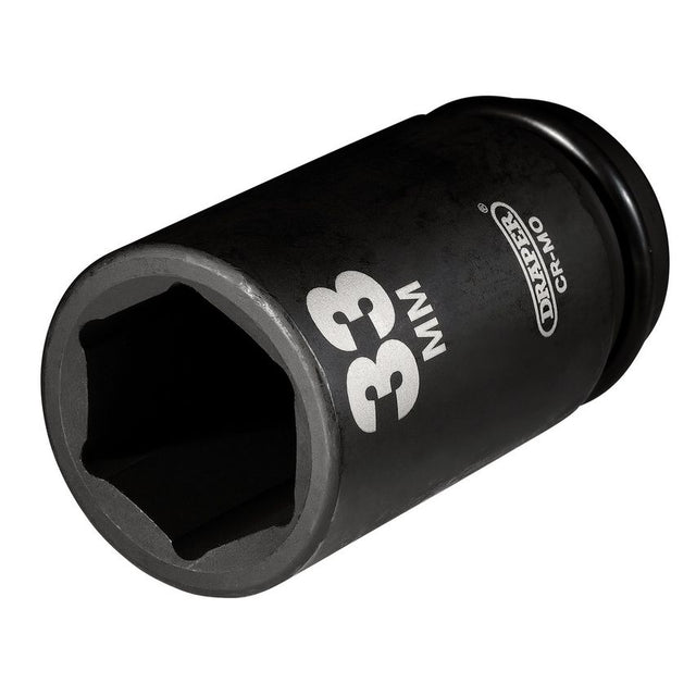 This Draper Hi-TORQ 6-point deep impact socket is forged from hardened chrome molybdenum steel. Black phosphate finish for corrosion protection. For use with electric or pneumatic impact wrenches with a 3/4" drive. Supplied with ring and pin.