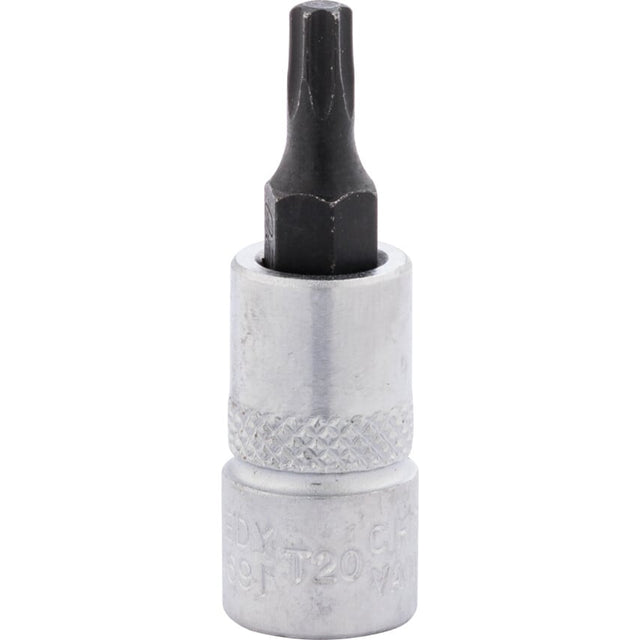 These Torx screwdriver bits are ideal for assembly and servicing of small precision mechanisms associated with electrical, electronic, ignition and refrigeration work. Each component boasts a double knurl feature that gives a high grip which is essential for a quick tool change when your hands are greasy/oily. The 12 point bi-hexagon side drive design will give a higher torque than normal sockets. Manufactured from chrome vanadium, fully chrome plated with a mirror finish and aluminium-free to ensure non-sparking. Chamfered leading edge ensures easy fastener location. Available in a range of sizes.