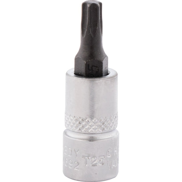 These Torx screwdriver bits are ideal for assembly and servicing of small precision mechanisms associated with electrical, electronic, ignition and refrigeration work. Each component boasts a double knurl feature that gives a high grip which is essential for a quick tool change when your hands are greasy/oily. The 12 point bi-hexagon side drive design will give a higher torque than normal sockets. Manufactured from chrome vanadium, fully chrome plated with a mirror finish and aluminium-free to ensure non-sparking. Chamfered leading edge ensures easy fastener location. Available in a range of sizes.