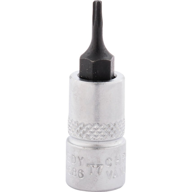 These Torx screwdriver bits are ideal for assembly and servicing of small precision mechanisms associated with electrical, electronic, ignition and refrigeration work. Each component boasts a double knurl feature that gives a high grip which is essential for a quick tool change when your hands are greasy/oily. The 12 point bi-hexagon side drive design will give a higher torque than normal sockets. Manufactured from chrome vanadium, fully chrome plated with a mirror finish and aluminium-free to ensure non-sparking. Chamfered leading edge ensures easy fastener location. Available in a range of sizes.