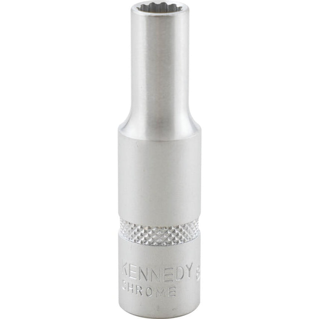 Available in a range of metric sizes, these 3/8" square drive, bi-hexagon deep sockets offer superior torque with minimal user exertion. Manufactured from chrome vanadium steel and complete with a chrome-plated, polished mirror finish. With a 12 point side and side drive, the deep socket gives a higher torque than normal sockets, grips worn nuts and will not round off existing nuts. Each socket possesses a ball-retaining groove on each face of the square drive, which ensures a positive fit with accessories. Requires only a one-twelfth turn to engage the next point of the socket. Features and Benefits Manufactured from durable chrome vanadium steel for longevity Polished mirror finish repels dirt and grime Require only one-twelfth of a turn to engage the next part of the socket for quick fastening and loosening of nuts Ball retaining groove ensures a positive fit with accessories and reduces slippage 12 point and side drive allows you to deliver more torque than a standard socket Typical Applications Engineering Plumbing DIY Automotive