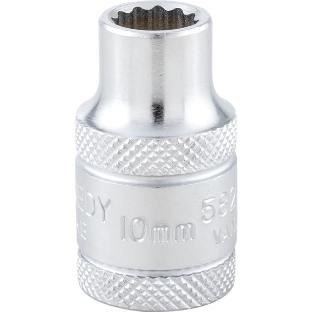 With a 1/2" square drive, these vanadium steel bi-hexagonal sockets are the ideal product for working on hard to reach fastenings or more stubborn fastenings due to their 12 point design. Possessing a higher torque than normal sockets, this range of sockets can also effectively grip worn nuts and won't round off existing nuts. Finished with a ball-retaining groove on each face of the square drive, which ensures a positive fit with accessories. Features and Benefits Side drive design gives a higher torque than regular sockets Ball retaining groove on each product ensures a positive fit with compatible accessories Manufactured from vanadium steel for durability Available in a variety of sizes to allow you to purchase the size that best suits your requirements Requires only a one-twelfth turn to engage the next point of the socket Typical Applications Ideal for use when tightening or loosening hexagonal shaped fastenings in a variety of industries including: Automotive Construction Agricultural Plumbing