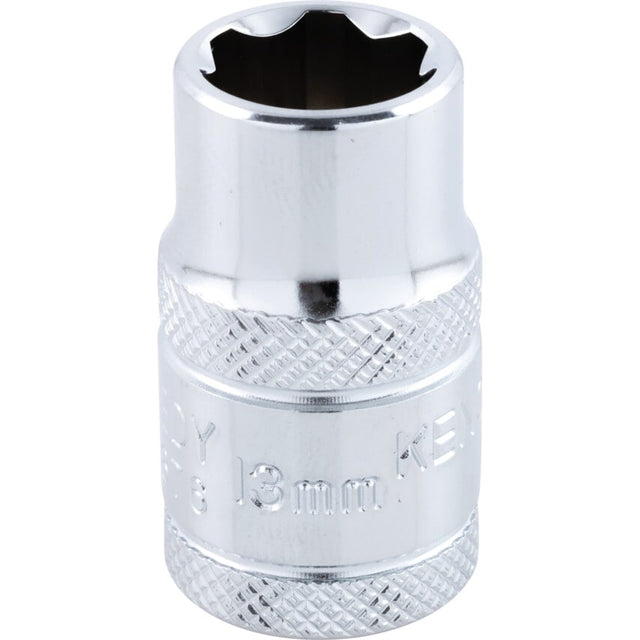 The Ken-Grip socket offers a new standard of performance with the ability to grip up to 95% of a rounded fastener. It has a unique patented design that grips even worn and rusted fasteners without damaging them and can be used on a wide range of fasteners, including non-metric hexagons and E-Torx Drive sizes. The double knurl feature gives a high grip which is essential for quick tool change when hands are greasy or oily. Manufactured from chrome vanadium steel, the sockets and accessories are aluminium free and fully chrome plated for an easy clean finish. All products have a 1/2in. square drive and are supplied in metric sizes.