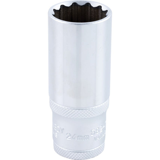 Available to purchase in varying sizes, these bi-hexagonal sockets possess a 12 point side drive design to give a higher torque than normal sockets. Able to grip worn nuts and also will not round off existing nuts. All sockets have a ball-retaining groove on each face of the square drive, which ensures a positive fit with accessories. Require only a one-twelfth turn to engage the next point of the socket.