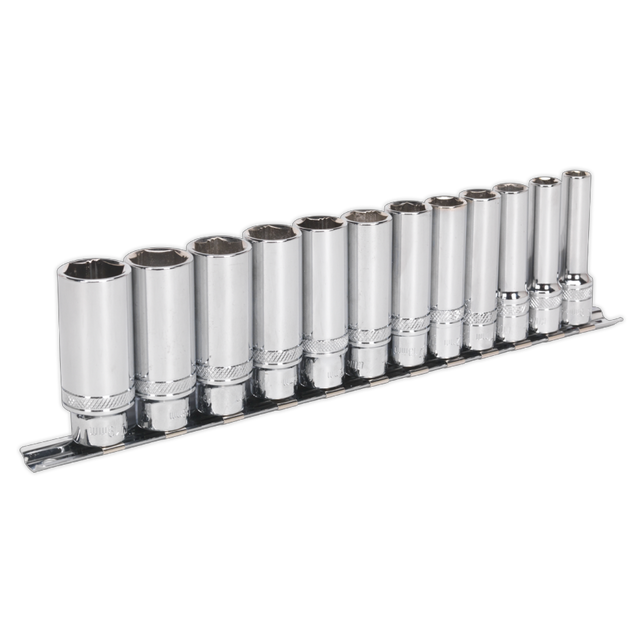 Manufactured from hardened and tempered high grade Chrome Vanadium 6142 steel. Fully polished mirror finish for resistance to corrosion. Features specially machined flutes in the walls of the socket which enable use on up to 85% rounded fasteners. This not only provides added strength but also prevents damage to worn or rusted fixings. Includes knurled ring for extra grip with oily fingers. Supplied on socket rail.