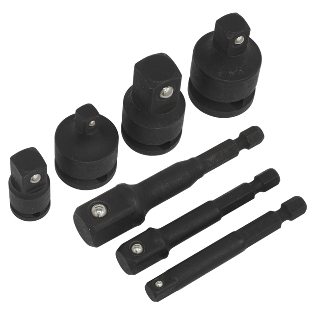 Manufactured from Chrome Vanadium and Chrome Molybdenum steel with manganese phosphate finish for added resistance from corrosion. Includes three hex shank power tool socket adaptors and four square drive socket adaptors.