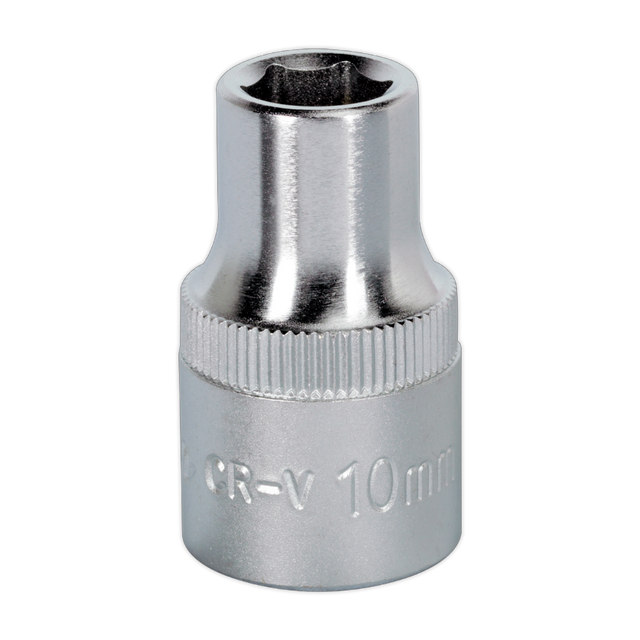 Cold-forged Chrome Vanadium steel socket. Hardened and tempered for added strength. Chrome plated in half chrome, half satin finish with knurled ring for extra grip with oily fingers. WallDrive socket configuration.