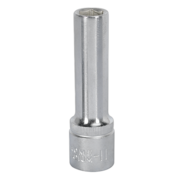 Cold-forged Chrome Vanadium steel socket. Hardened and tempered for added strength. Chrome plated in half chrome, half satin finish with knurled ring for extra grip with oily fingers. WallDrive socket configuration.