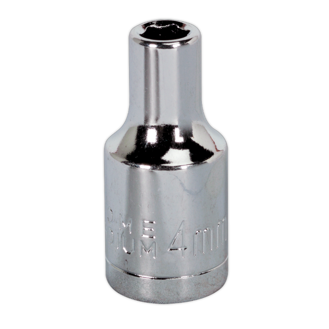 Cold-forged Chrome Vanadium steel socket. Hardened and tempered for added strength. Chrome plated in half chrome, half satin finish with knurled ring for extra grip with oily fingers. WallDrive socket configuration.