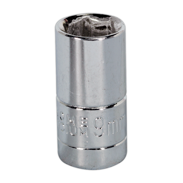 Cold-forged Chrome Vanadium steel socket. Hardened and tempered for added strength. Chrome plated in half chrome, half satin finish with knurled ring for extra grip with oily fingers. WallDrive socket configuration.