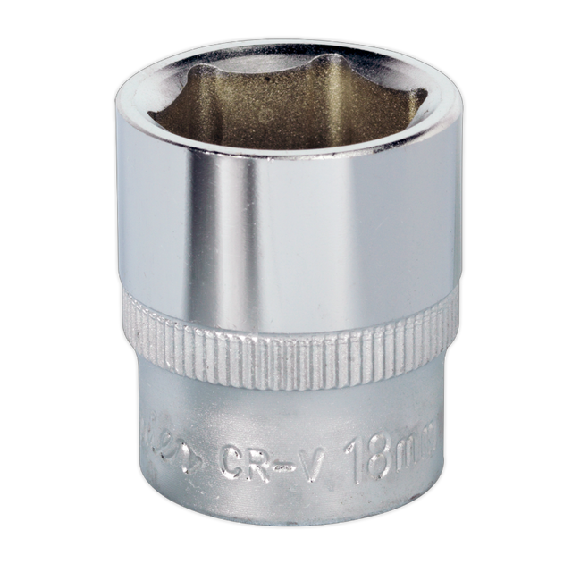 Cold-forged Chrome Vanadium steel socket. Hardened and tempered for added strength. Chrome plated in half chrome, half satin finish with knurled ring for extra grip with oily fingers. WallDrive socket configuration.