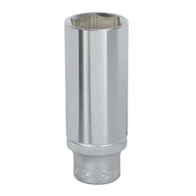 Cold-forged Chrome Vanadium steel socket. Hardened and tempered for added strength. Chrome plated in half chrome, half satin finish with knurled ring for extra grip with oily fingers. WallDrive socket configuration.