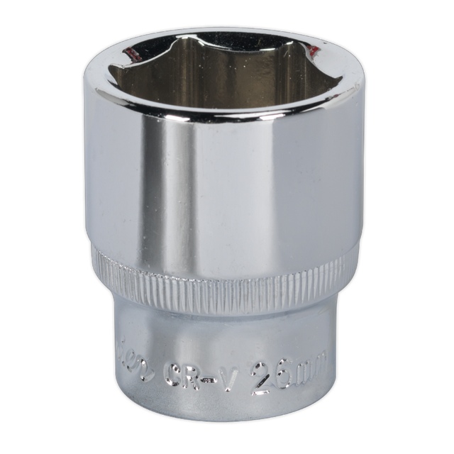 Cold-forged Chrome Vanadium steel socket. Hardened and tempered for added strength. Chrome plated with a fully polished mirror finish. WallDrive socket configuration. Knurled ring for extra grip with oily fingers.