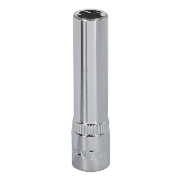 Cold-forged Chrome Vanadium steel socket. Hardened and tempered for added strength. Chrome plated with a fully polished mirror finish. WallDrive socket configuration. Knurled ring for extra grip with oily fingers.