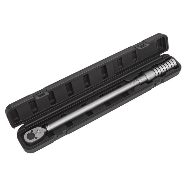 Manufactured from hardened and tempered Chrome Vanadium steel with a polished satin finish. Smooth action ratchet head with flip reverse action to allow torquing in both directions. Easy to use torque adjustment, locks when required setting is selected. Calibration tolerance in accordance with BS EN ISO 6789-1:2017. Scales graduated in both Nm and lb.ft. Wrenches are individually tested to standards with 4% accuracy and each wrench is issued with an individually numbered test certificate. Supplied in storage case.