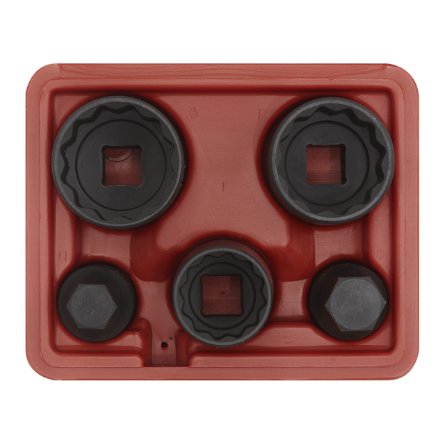 High quality Chrome Molybdenum hub impact sockets/hex bits. Specially designed for VAG vehicles. Suitable for use with 1/2"Sq drive impact tools. Supplied in storage case.