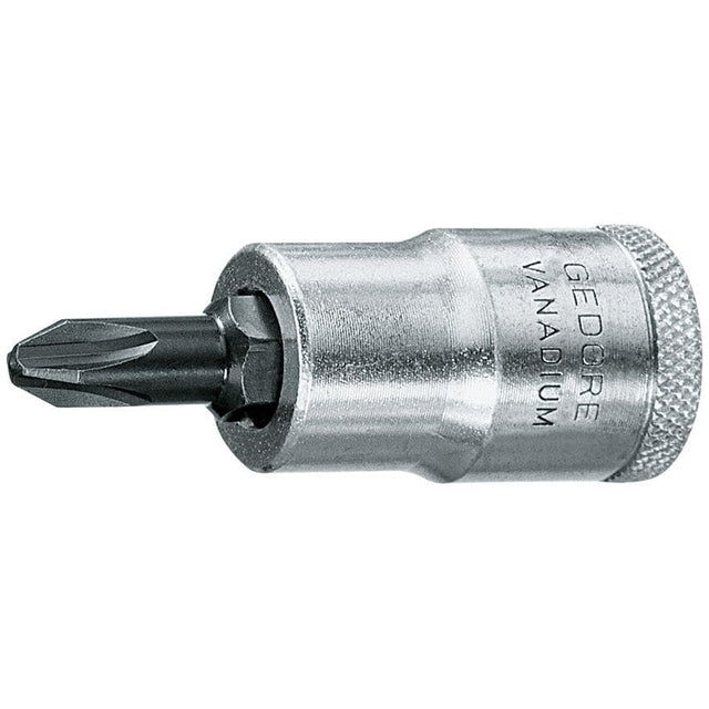 Hand-operated, knurled grip Chrome-plated With pressed-in pin in GEDORE vanadium special steel, gun-metal finish Tip as per DIN ISO 8764-1 PH Tip as per DIN ISO 8764-1 PH