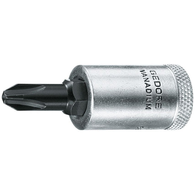 Hand-operated, knurled grip Chrome-plated With pressed-in pin in GEDORE vanadium special steel, gun-metal finish Tip as per DIN ISO 8764-1 PH Tip as per DIN ISO 8764-1 PH