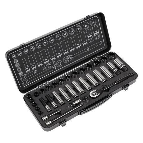 Low stock (10 units)£197.99Unit price /UnavailableSocket Set34 Piece 3/8" Square Drive 6PT WallDrive Metric Black Series