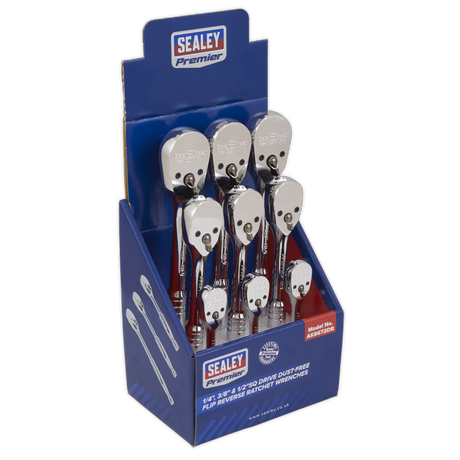 Low stock (10 units)£54.99Unit price /UnavailableRatchet Wrenches 1/4", 3/8" & 1/2" Square Drive Pear-head Flip Reverse Display, Box of 9