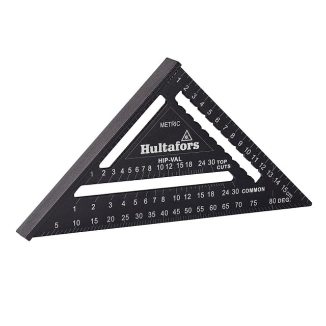 The Hultafors Rafter Square allows you to make fast and precise 45 and 90 markings. Solid aluminium body with CNC machined edges for greater accuracy and durability. It has scales for cutting hip, valley and jack rafters. The thick edge can be used as a saw guide - it can be used directly with the saw against the square for cross cuts or angled cuts. It has scribing notches and can also be used as a protractor, for easily finding and marking various common angles. A robust and versatile tool for all craftsmen.