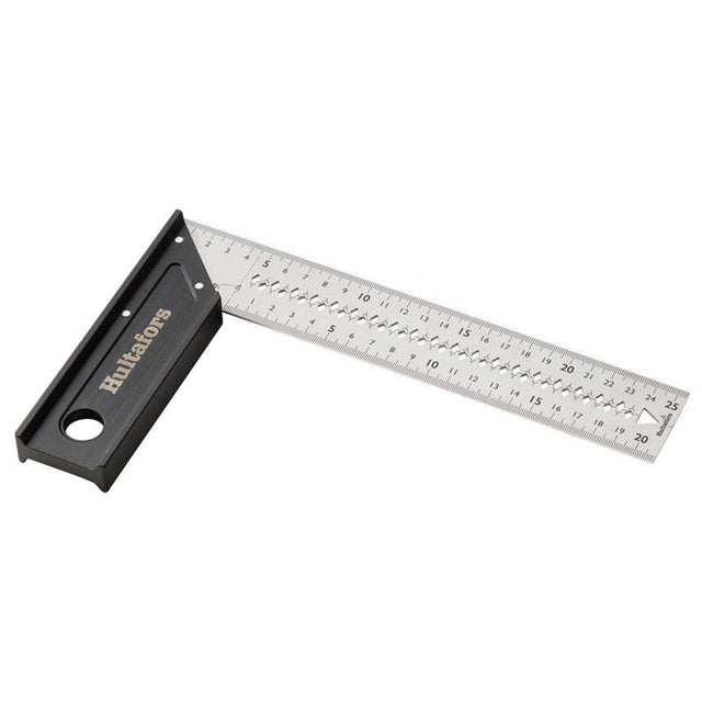 This Hultafors Square has been built for precision and durability. Excellent for construction, workshops and carpentry work. Unique assembly technology with strong custom riveting and a 1.5mm thick high-strength stainless steel blade. This provides an extremely durable design which can withstand tough working environments and will last a long time. The stock is made of fully anodized aluminum with a 18mm thick handle. Its high strength stainless steel blade is 45mm wide and 1.5mm thick. This accommodates work with standard stud dimensions and a center line makes it easy to quickly mark out both sides of a stud. It also has scribing notches spaced 5mm apart, these can be used to draw or cut a line parallel along an edge. The precision cut blade and riveting have very small tolerances to provide high precision; angle tolerance 0.03 (0.5 mm/m). Made in Europe with full control over working conditions and sustainability.