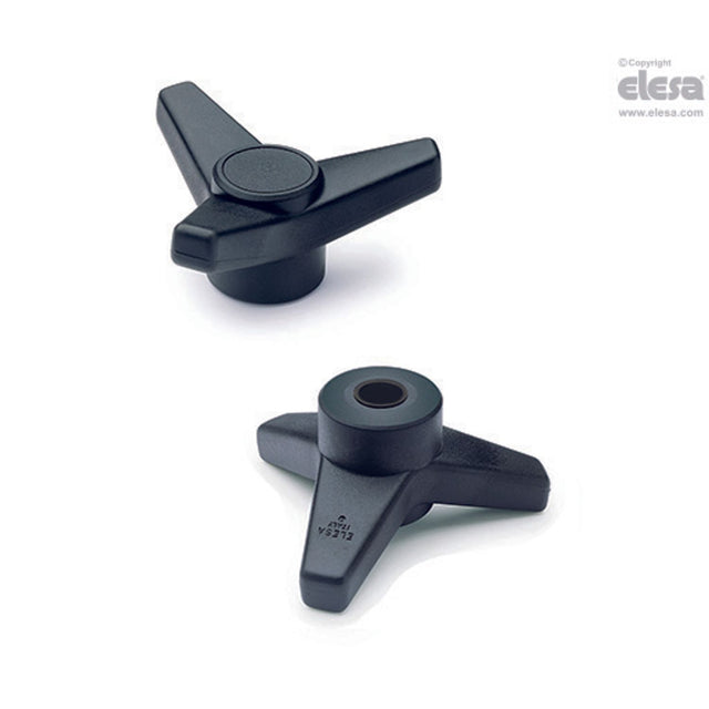 VB.639 Three-arm knobs, Technopolymer, Black-oxide steel boss, plain blind hole For product drawing and dimensions refer to pdf Item data sheet.