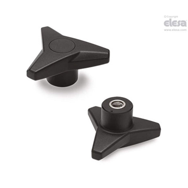 VB.839 Three-arm knobs, Technopolymer, Stainless steel boss, threaded blind hole For product drawing and dimensions refer to pdf Item data sheet.