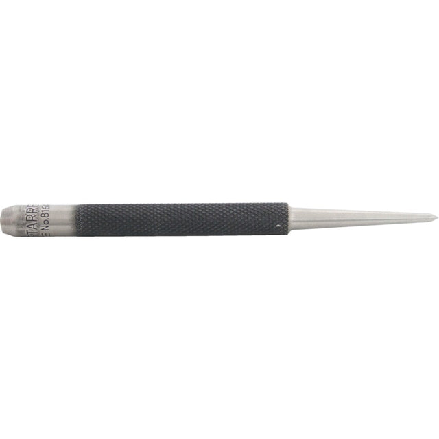 Starrett's 816A Prick Punch is used when a precise positioning of a point or an intersection of lines is required. The points are carefully ground to the correct taper, which is sharper than the normal center punch. This allows exact placement of the point, providing sharp impressions. Manufactured from hardened and tempered steel with knurled ground and precision ground point.