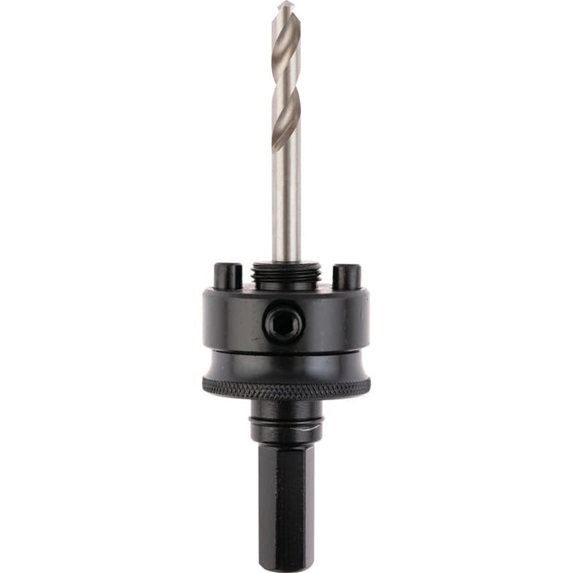 Set screw allows for easy replacement of the 9.525mm (6/8") HSS pilot drill.