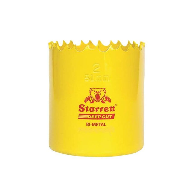 The Starrett Deep Cut Bi-Metal Holesaws offer aggressive material penetration and kerf clearance. Improved tooth material for enhanced heat and wear resistance and greater product life. Ideal for solid materials or tubes with a wall thickness greater than 3mm. The large cutting depth improves cutting performance on tubes, particularly where there is a need to cut through both sides of the tube. Cutting Depth: 51mm.