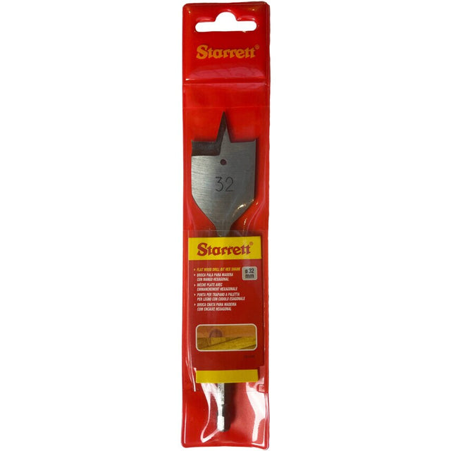 Starrett's range of flat wood hex bits ensures fast and clean cutting on all wood. With a reduction in heat as a result of the innovative head design, the Starrett wood hex bits are durable and have an excellent tool life. Features and Benefits Twin spurs deliver clean entry and exit of holes Precision ground face 6.35mm (1/4") hexagonal shank suitable for impact drills Precision ground tip enabling accurate and fast start in materials Reduction in heat from cutting head design Specialised heat treatment to increase tool lifeApplicationsSuitable for: All types of hard and soft woodApprovals and Standards Metric line according to DIN 338 standard