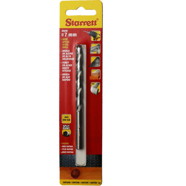 Starrett's range of HSS split points provides a superior strength drill body, featuring specialised heat treatment to withstand the most demanding of applications, high-performance carbide tips with a two-channel design featuring a unique chip removal/breakage accelerator.Features and Benefits Special flute geometry designed to deliver fast material penetration and maximum debris removal 130-degree tip angle - fast drilling with hammer action Precision ground carbide tips: consistent performance 2 cutting edges with 1 centering point High fracture resistanceApplicationsSuitable for: Alloy steels, carbon steels, cast iron, hardened alloy steels, stainless steel, wood and soft materialsApprovals and Standards Metric line according to DIN 338 standard