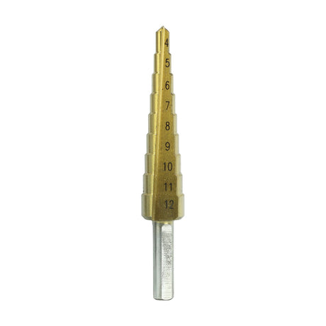 Low stock (10 units)£136.39Unit price /UnavailableHSS Tin-Coated 4-12mm Step Drill with 1/4in Shank