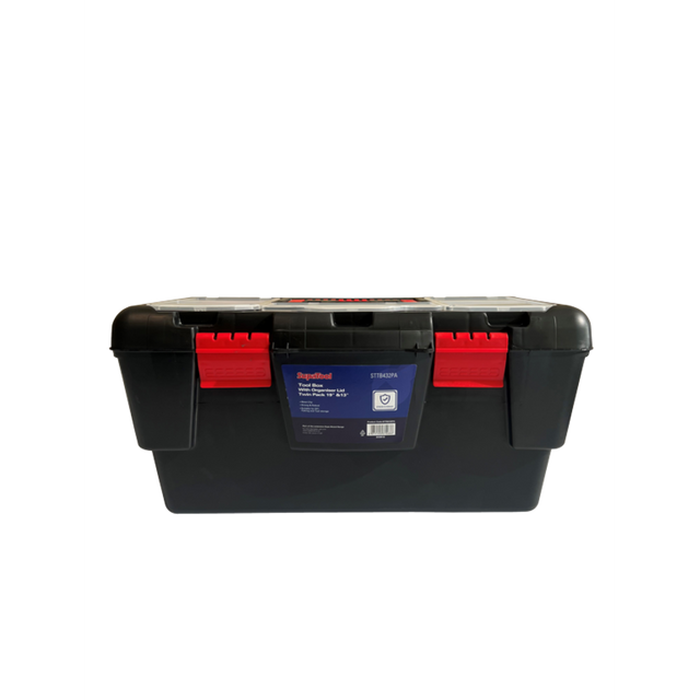SupaTool Tool Box With Organiser Lid Twin Pack 13" & 19" Strong and Robust Organiser Lid Suitable for DIY, Fishing and Tool storage
