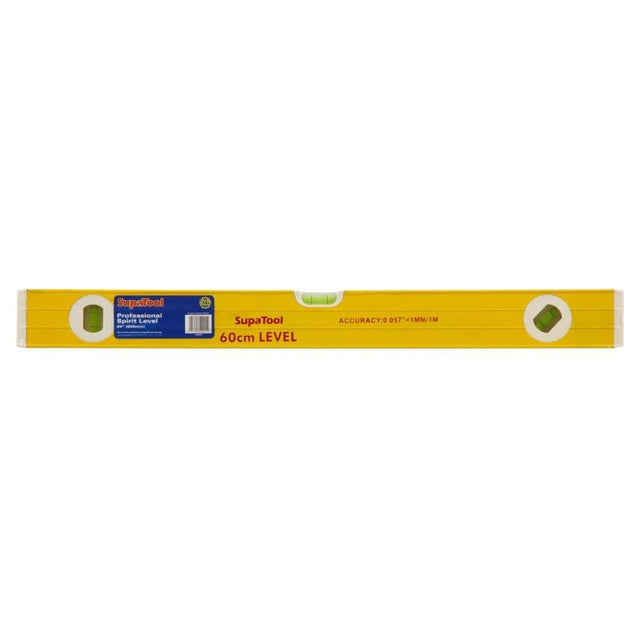 SupaTool 24"/60cm Spirit Levels 24" (600mm) Two milled edges, end caps with non-slip strips 1.5mm aluminium construction Accuracy 0.0057 = 1mm/1m Professional 2 Year Guarantee