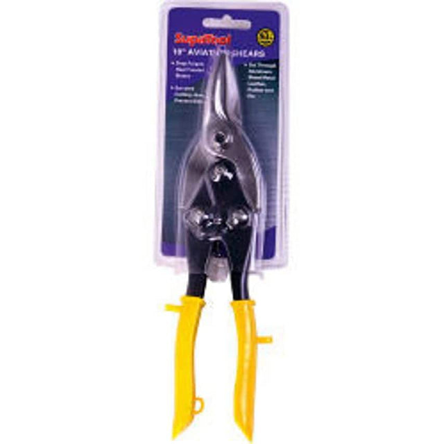 SupaTool Aviation Shears 10''/250mm Polished Carbon Steel Drop forged, heat treated blade Serrated cutting jaw prevents slips Cut through aluminium, sheet metal, leather, rubber etc 2 Year Guarantee
