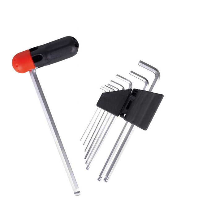 SupaTool Long Arm Ball End Hex Key Set 10 piece Satin finish 1.5mm, 2mm, 2.5mm, 3mm, 4mm, 5mm, 6mm, 8mm, & 10mm sizes Interchangeable handle 2 year guarantee