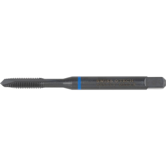 With a strong high speed steel construction for improved rigidity when machining and a black oxide finish for improved wear and heat resistance, the 'Blue Ring' range of gun nose taps from Swiss + Tech are ideal for tough application and through holes.