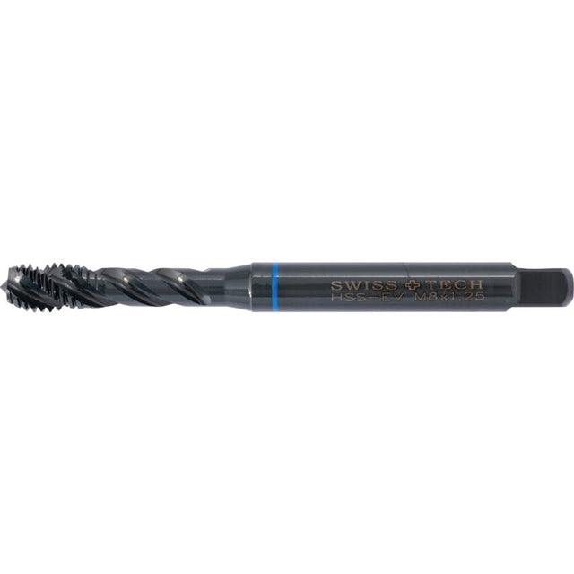 HSS blue ring ISO (BLT) metric coarse oxidised spiral flute taps are made with a strong high speed steel with a black oxide finish for deep blind holes with reduced wear and improved heat resistance.