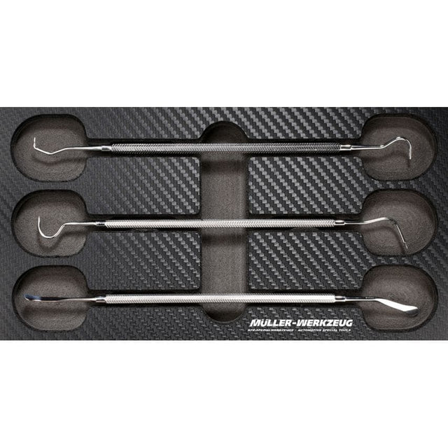 Multi-function micro tool kit, 3 pc.Can be used individually or two handedHigh quality chrome finish with integrated textured shaftsImproved accessibility & increased controlApplications;O-rings, spring rings, seals, connectors,accurate ECU remapping, soldering, relay removal, picking out fuses, etc.