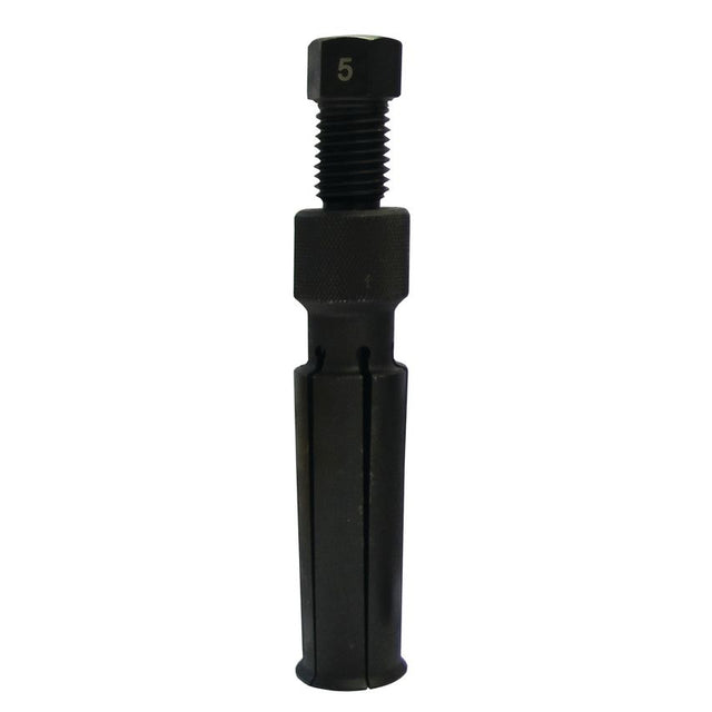 The split collet is pushed into the centre of the bearing and then expandedvia the hex nut on the end of the collet until a secure grip is achieved.The slide hammer is then attached providing the necessary extracting force.Internal Spread Min - Max: 30-38mmNo.5 - stamped on extractor