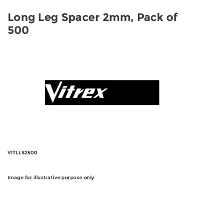 These Vitrex Long Leg Spacers provide an easy way to achieve a more professional tiling finish. They ensure a constant and even spacing of tiles, allowing for the specified size in grout line. The tiles spacers have easily breakable legs for T-shape spacers. They are easier to handle than standard tile spacers and allow for a 2mm grout line. Supplied in a resealable bag.