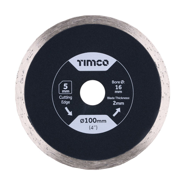 A continuous rim diamond blade, manufactured to smoothly and precisely cut ceramic tiles, porcelain, stone and marble. The premium diamond powder increases cutting efficiency and cutting speed. Can be used dry but performs better during wet cutting.