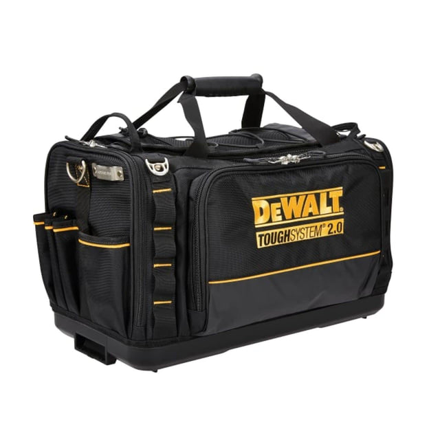 The DEWALT TOUGHSYSTEM 2.0 Tool Bag features over 50 pockets, and a top bungee cord allowing for vertical storage of large power tools, hand tools, and other jobsite necessities.It can be accessed from any side for maximum convenience. Constructed from durable 1680D fabric which is dirt-repellent.The bag is fitted with a waterproof base, making it ideal for any work environment, and can be stacked with any other TOUGHSYSTEM 2.0 product.Specifications:Max Load: 34kg.Dimensions (L x H) : 38 x 33cm.