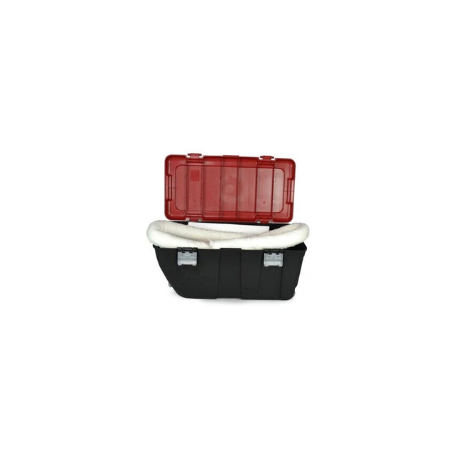 This toolbox kit is ideal for acting quick when spills happen in the workplace as the strong, wheeled box makes this easy to manoeuvre and store. The kit contains polypropylene absorbents specially designed for dealing with oil spills, and a half water wick which features a super absorbent strip containing high levels of SAP (super absorbent polymer). Features and Benefits Absorbs up to 60L of hydrocarbon derivatives For use with oil and other hydrocarbon derivatives only Avoid using on water containing soap or detergent as the product will sink Ideal for outdoor spillages as they float on water, even when saturated with oil Polypropylene oil-only absorbents can absorb up to 25 times their own weight in liquid Works to swiftly remove potentially hazardous spills and slip-hazards Contents 10 oil pads two oil pillows two oil socks (7.5cm x 1.2m) one water wick (50ft) four hazardous waste bags and ties and an instruction sheet