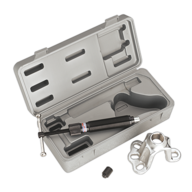 Puller yoke with 10tonne hydraulic ram. Suitable for four and five stud hubs. Hydraulic ram provides additional power to extract the most stubborn hubs.